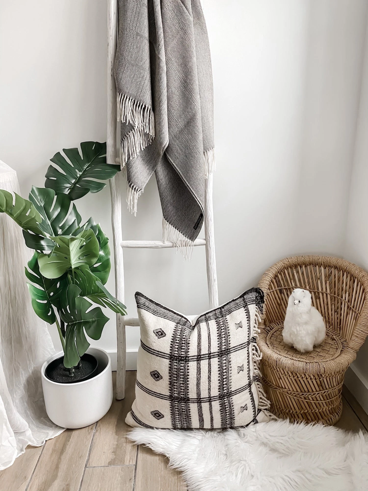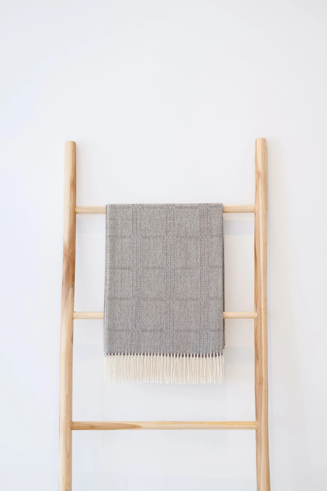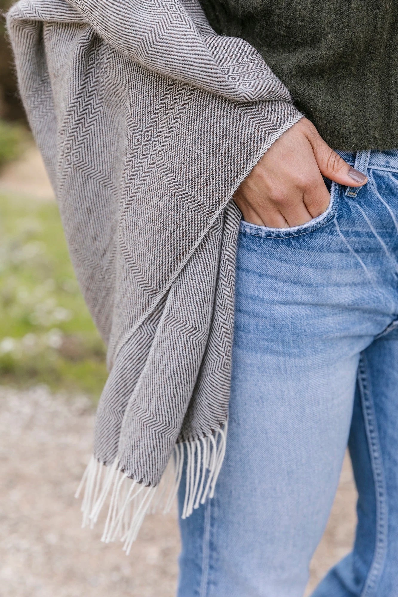 This soft and luxurious alpaca throw blanket adds warmth and comfort to your living space – and your shoulders when worn as a shawl! It’s the perfect cozy piece for the end of the bed or draped on a sofa or lounge chair. Our Charcoal Brown Alpaca Throw features a sophisticated and subtle geometric motif in an intricate diamond and square pattern with long twisted fringe on each end. This throw was made for snuggling up so wrap it around you and enjoy the cozy vibes.