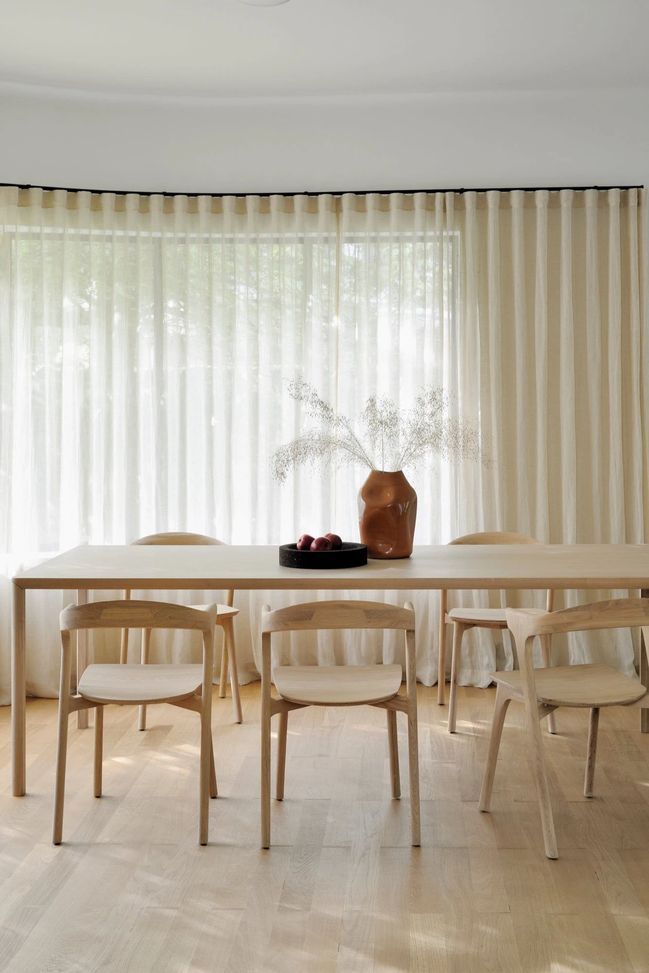 Our Bok Dining Chair’s distinctive contoured frame and clean lines combine to create a stunning piece that effortlessly balances timeless design with rock-solid construction. Its airy shape is a testament to its thoughtful design, providing a sense of openness without compromising on durability. Crafted from premium European White Oak, this chair is not just a piece of furniture; it’s an heirloom in the making.