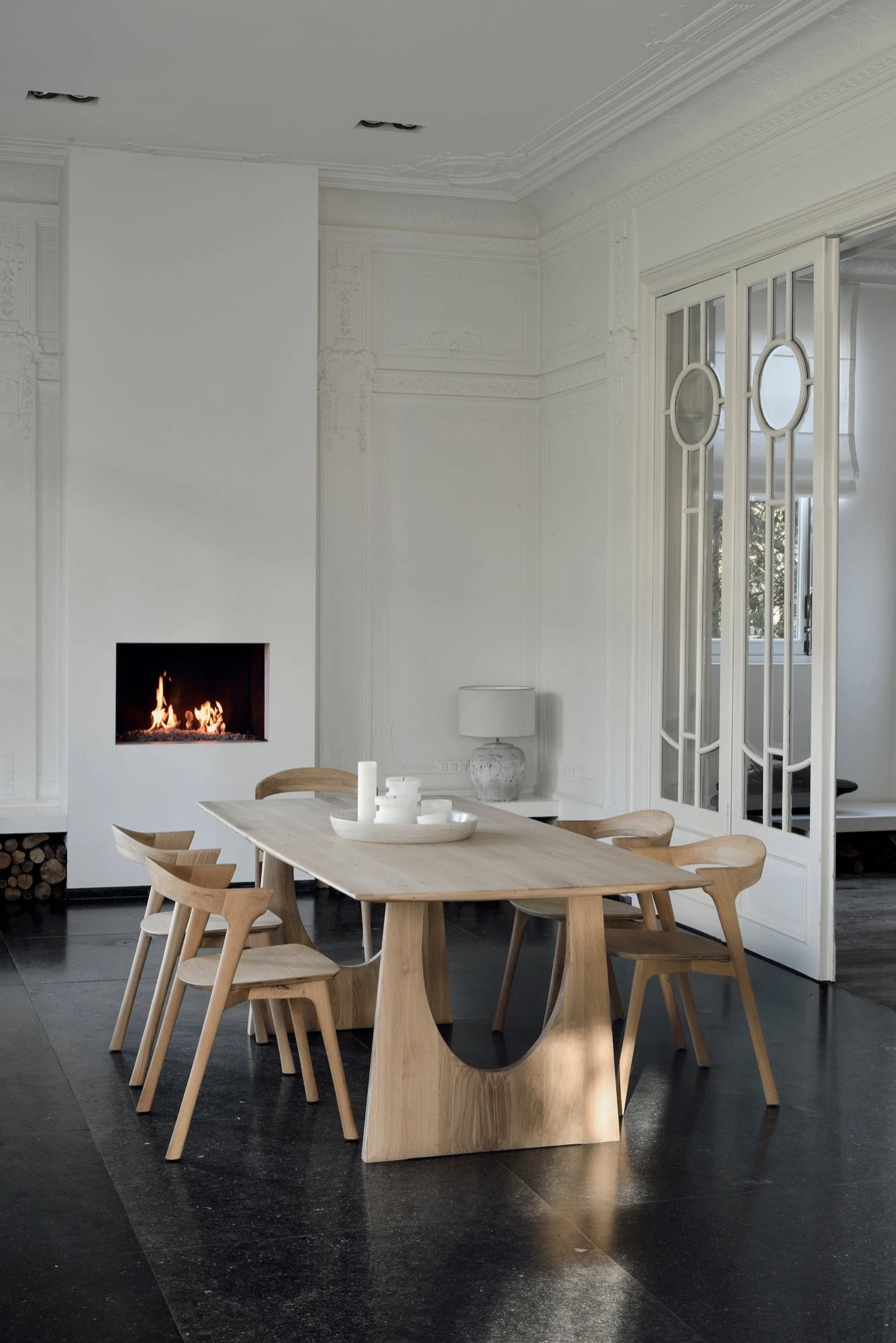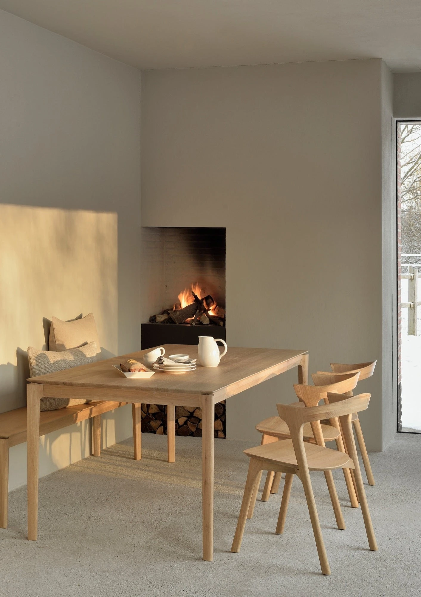 This dining chair is constructed of solid white oak with an oiled finish, and is the perfect complement to our Bok Dining Table and Bok Bench.