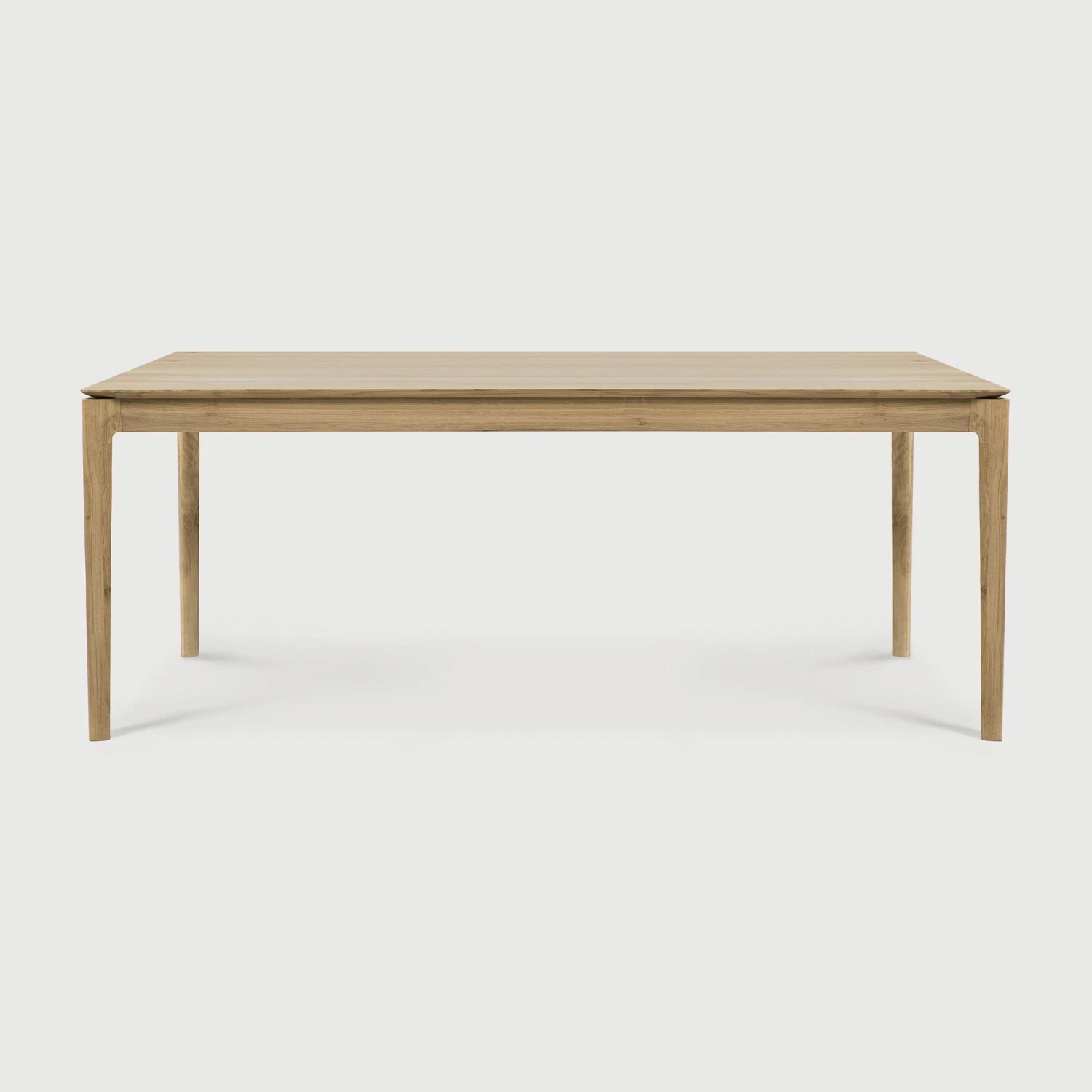 This dining table comes in a variety of sizes to perfectly suit your space – from cozy to expansive. It is constructed of solid white oak with an oiled finish, and is the perfect complement to our Bok Dining Chair & Bok Bench.