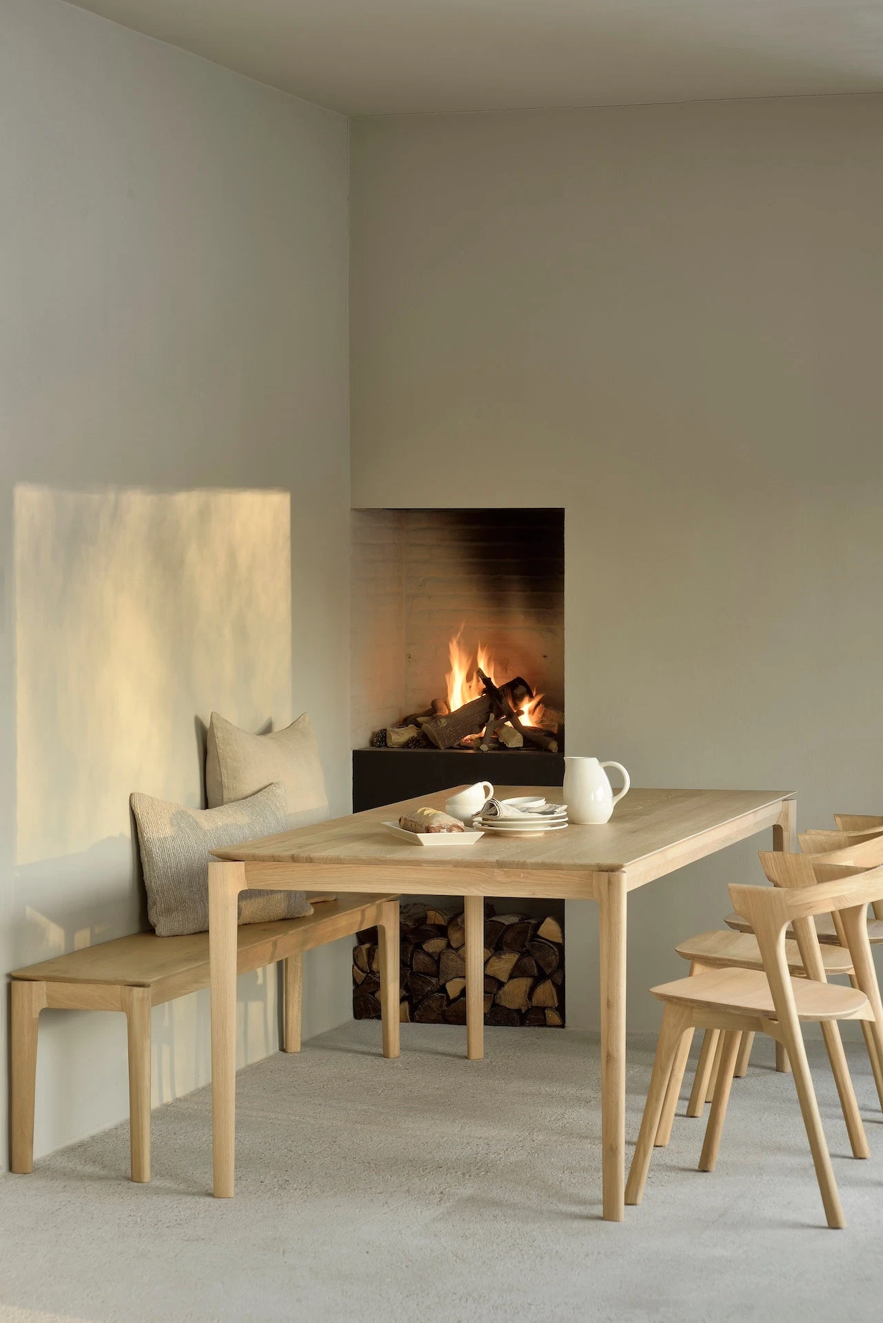 This extendable dining table comes in a variety of sizes to perfectly suit your space – from cozy to expansive. It is constructed of solid white oak with an oiled finish, and is the perfect complement to our Bok Dining Chair and Bok Bench.