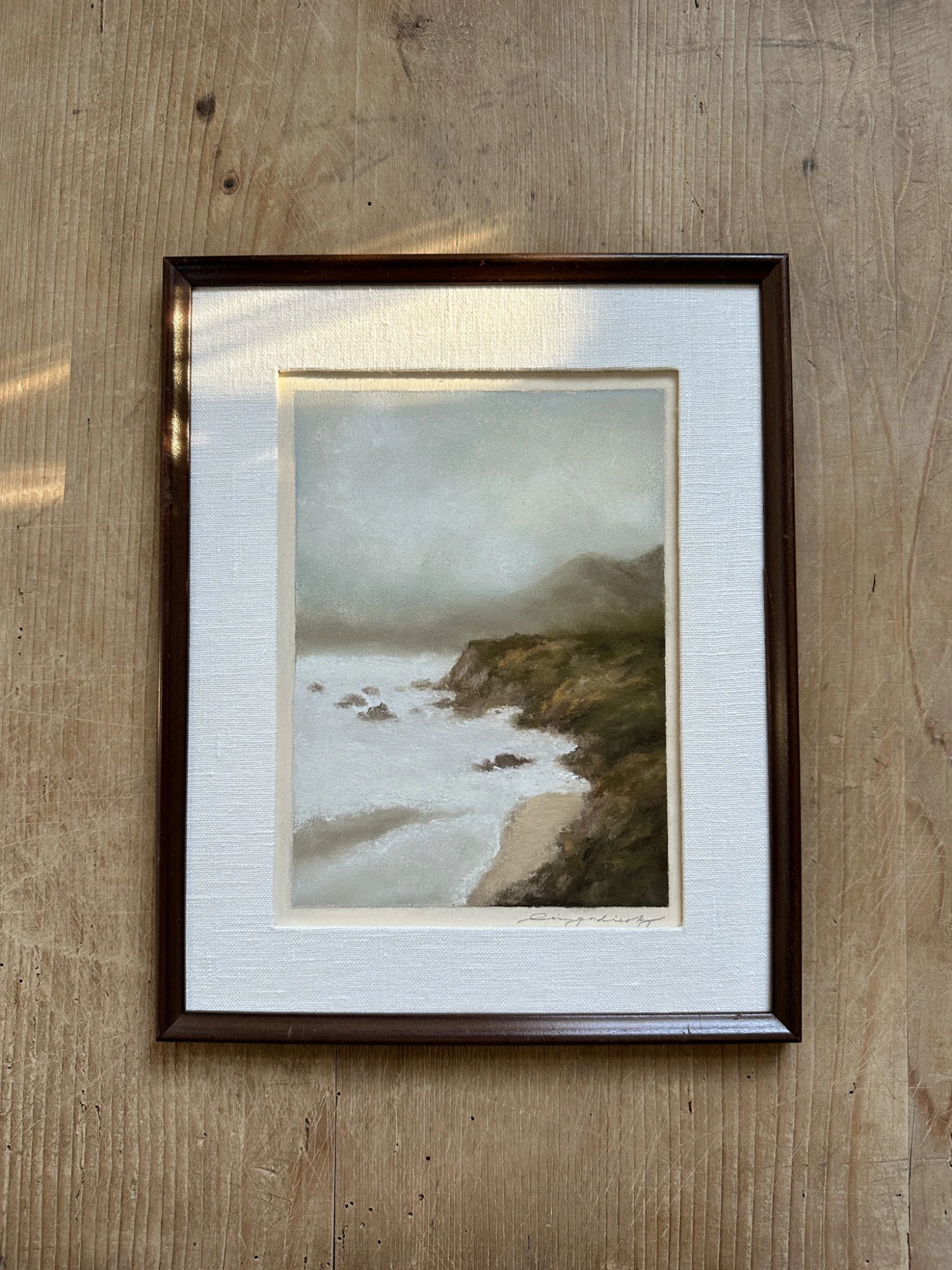 High-quality giclée reproduction of an original pastel painting depicting the beautiful + rugged California Coast by Lina Gordievsky. Printed on archival, acid-free, 100% cotton paper, and hand-cut. Each print is individually signed by the artist on the reverse.