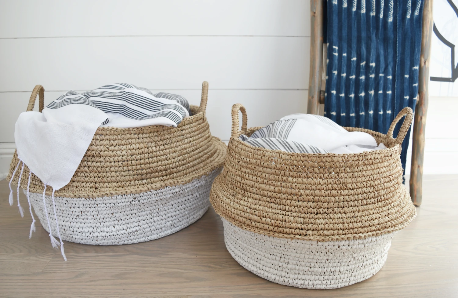 The two-toned with organic modern appeal, our Collapsible Woven Hyacinth Basket is a favorite of ours – collapsible, beautiful and functional. The ideal storage basket! They are the perfect accent in any room, and great for storing blankets, toys, shoes by the door, or anything else you may need them for. We also love this basket as a chic home for a houseplant.