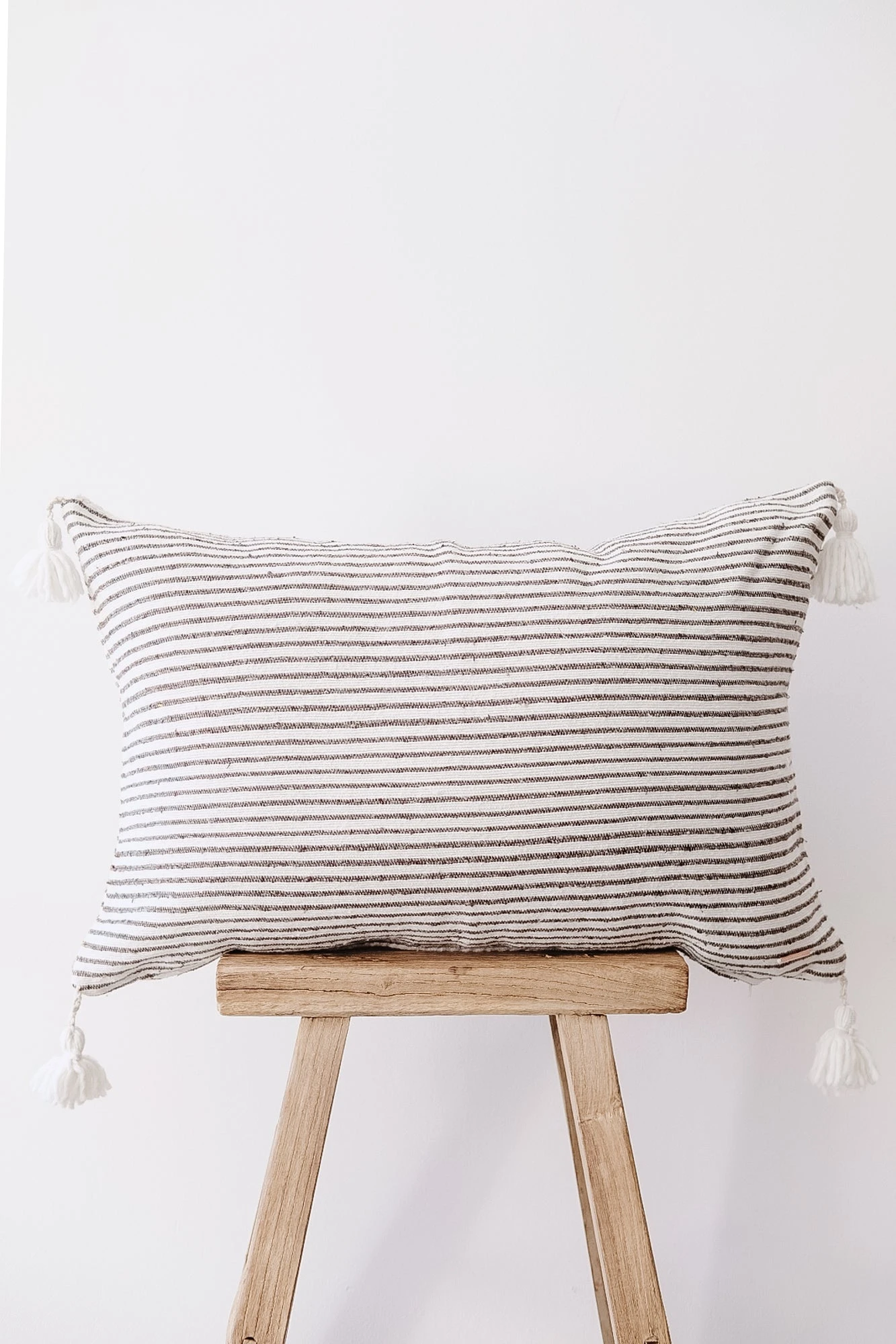 Dark Grey Stripe Moroccan Pom Pillow No. 01