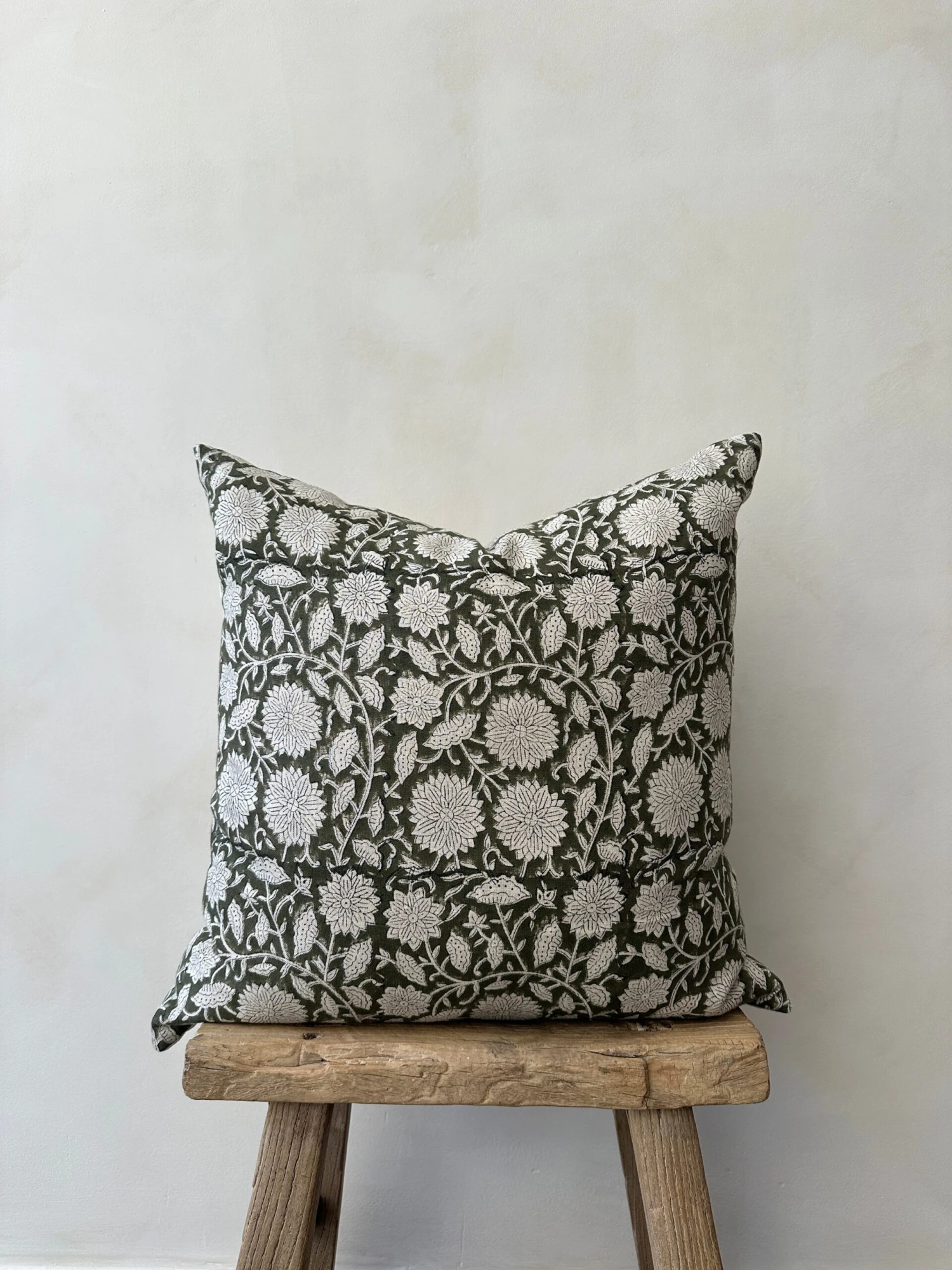 Add the perfect finishing touch to your sofa, bed, or lounge chair with this stylish linen Indian Blockprint Pillow. As versatile as it is chic, this comfortable hand-block-printed throw pillow features a distinctive print that not only introduces an intriguing layer of pattern to your space, but also serves as a subtle, neutral accent, effortlessly complementing and elevating your decor.