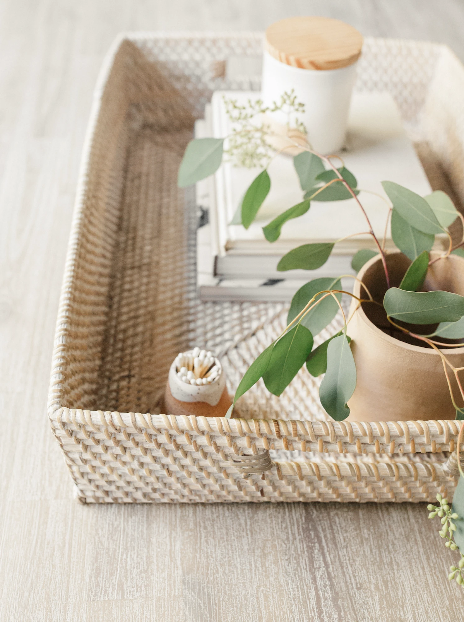 Casual and timeless, our whitewashed rattan basket tray is a stylish and practical accessory that lends to both form and function in any room. This basket tray can be styled on your coffee table or ottoman with your favorite candle, matchbook and accessories, set on a bedside table as a catch all, or used to organize your bathroom counter or vanity. A serious multi-tasker, it can also be used for entertaining as a serving tray.