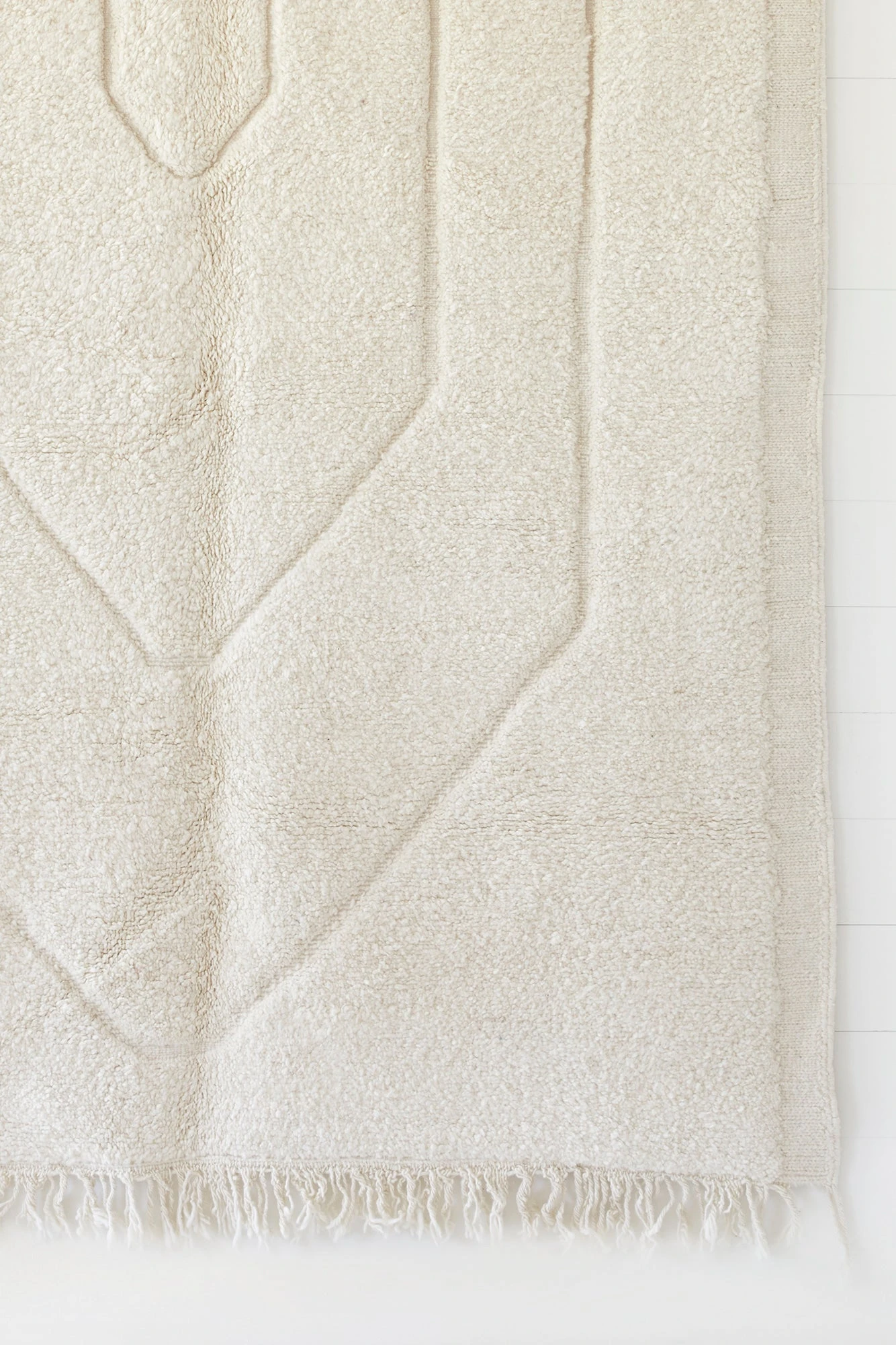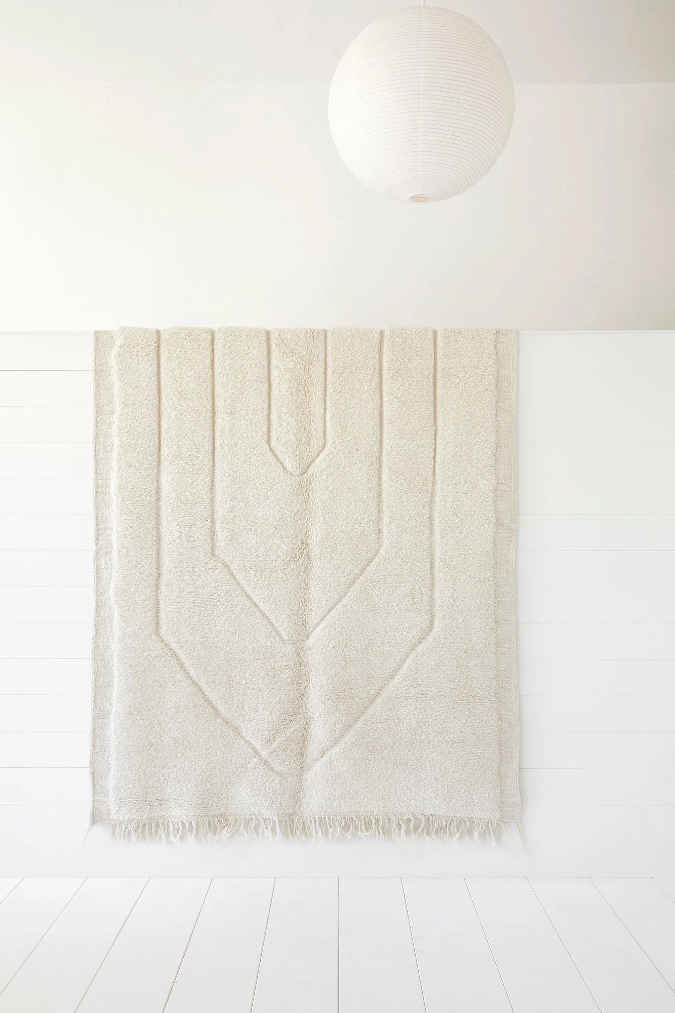 The craft of making these rugs is an ancient one, passed down from the tribal women of the Middle-Atlas Mountains from one generation to the next. Each rug is crafted by a single artisan over the course of weeks. They are inherently unique and one-of-a-kind, each reflecting the personality and mood of the woman weaving it. These rugs are skillfully hand-knotted from undyed sheep’s wool, creating a high pile with the most luxurious feel.