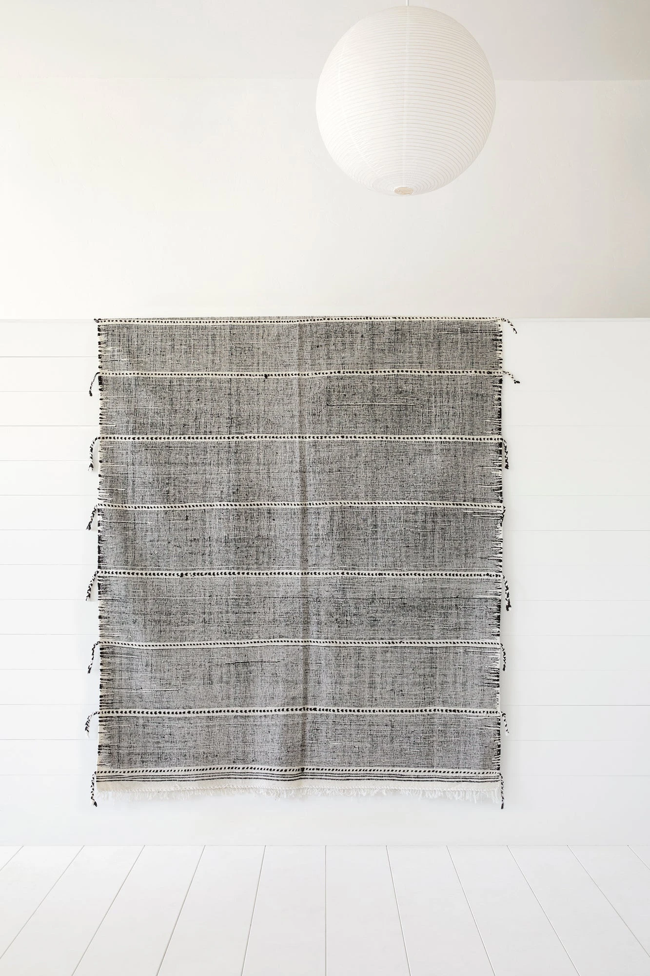 The craft of making these rugs is an ancient one, passed down from the tribal women of the High-Atlas Mountains from one generation to the next. Each rug is crafted by a single artisan over the course of weeks. They are inherently unique and one-of-a-kind, each reflecting the personality and mood of the woman weaving it. This Kilim rug is made from tightly hand-woven sheep’s wool yielding a flat surface with no pile.