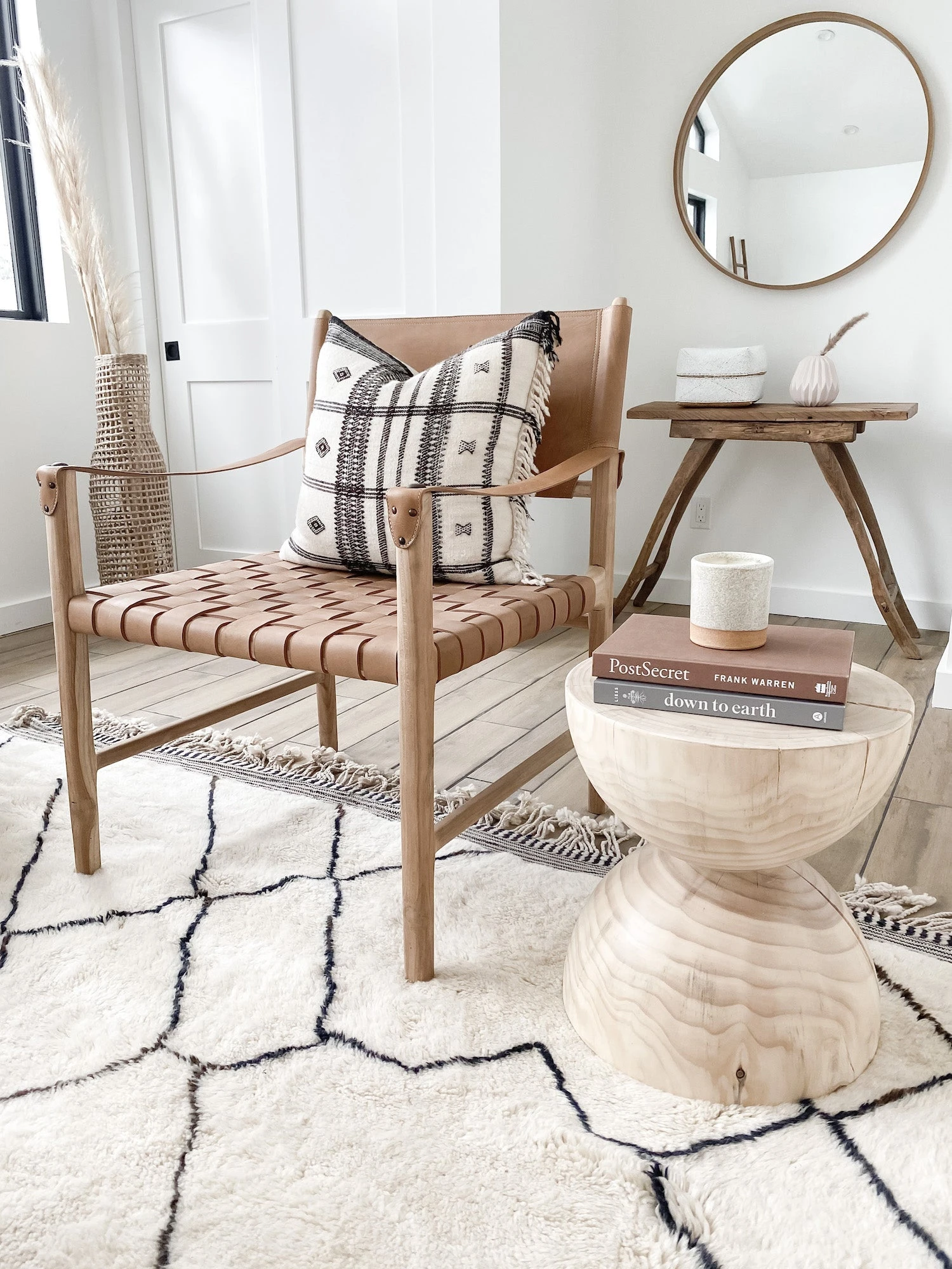 There is variation between natural materials and leather, making each piece unique and one of a kind. Knots and variations in wood grain are natural and can be expected. The supple semi vegetable-tanned leather has a softly worn waxed finish that deepens into a distinctive patina. Please note that because of the natural dying process, the leather color can vary slightly from batch to batch. Variations in texture and tone are all inherent to the leather hide and the dying process.