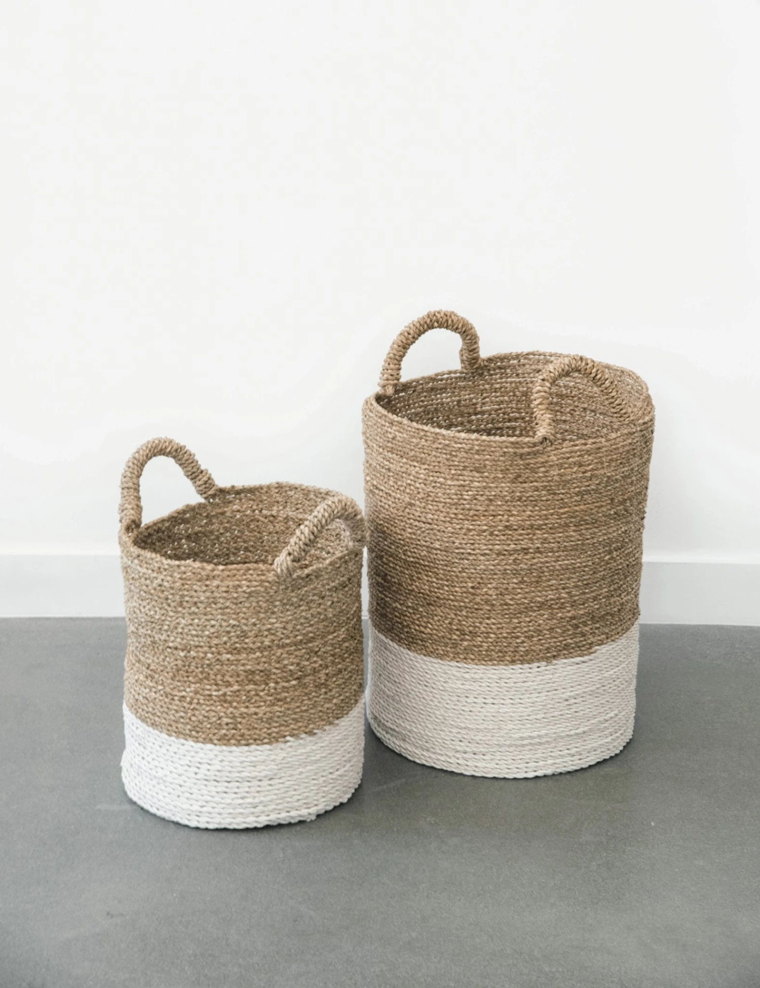 Two-toned with organic modern appeal, our Structure Hyacinth storage baskets are an excellent storage choice for nearly any room and any style. They are great for storing blankets, toys, shoes by the door, or anything else you may need them for! We also love the smaller two sizes of this basket as a chic home for a tall houseplant.