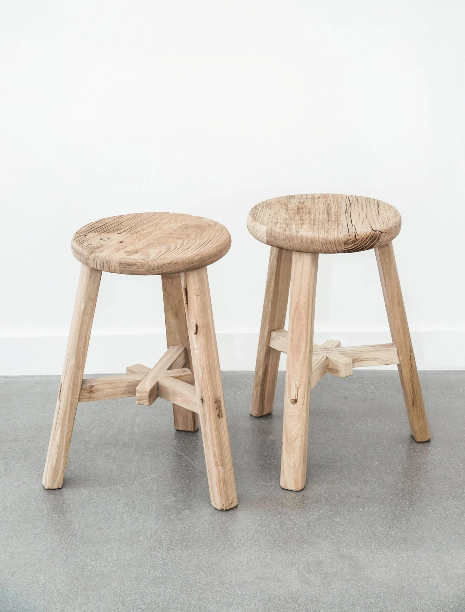 This stool was crafted in China from reclaimed vintage elmwood using traditional mortise and tenon joinery. Each piece is one-of-a-kind and slight variations between pieces can be expected.